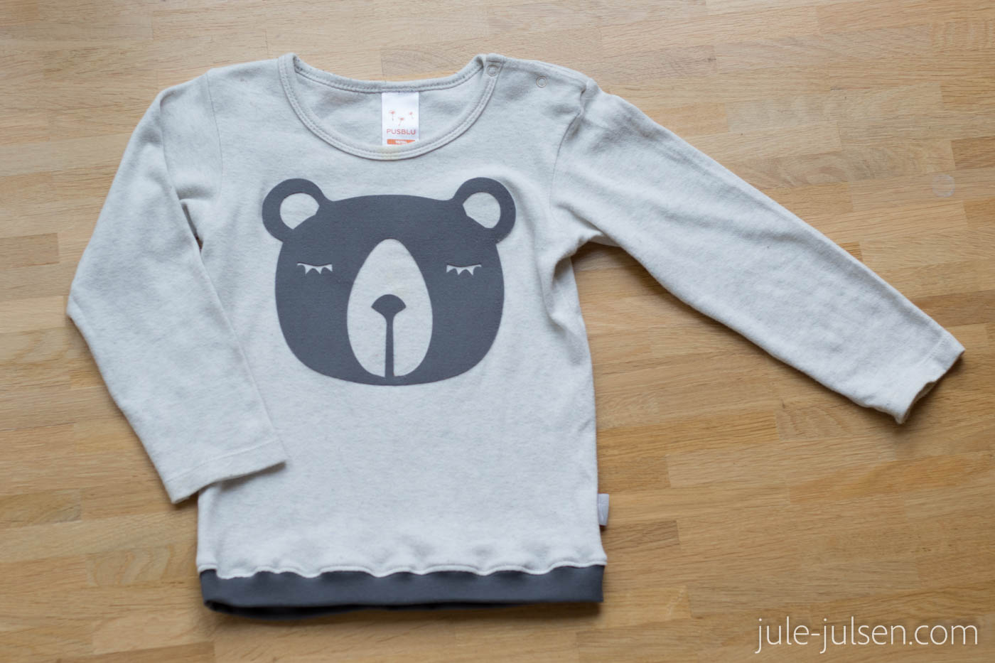 Shirt mit großem Baerenflicken gemacht aus einem alten Body